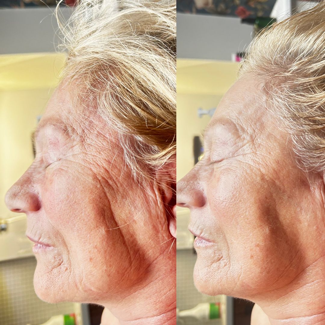 -wygładzenie zmarszczek i poprawa owalu twarzy